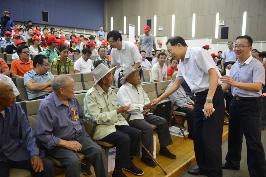 副市長(zhǎng)徐恩虎和老兵一一握手慰問(wèn)